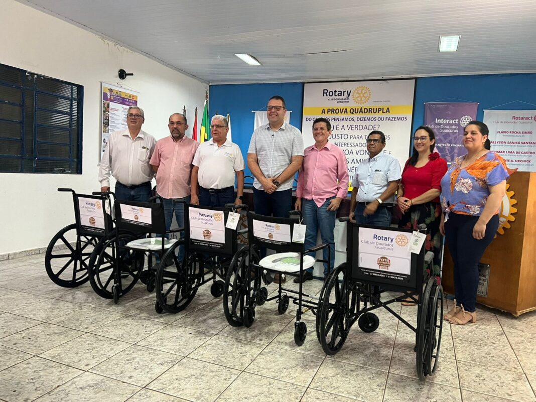 O Projeto Cadeira de Rodas do Rotary Club de Dourados Guaicurus adquiriu três novas cadeiras de rodas e três novas cadeiras de banho, por meio de uma parceria com a Prefeitura de Dourados. Segundo o coordenador do projeto, Júlio Saldivar Oviedo, o recurso financeiro para aquisição dos equipamentos foi adquirido durante a Festa Junina de Dourados 2024. “Queremos agradecer ao Prefeito Alan Guedes por nos proporcionar a oportunidade de participar desse grande evento e contribuir com nosso projeto”.