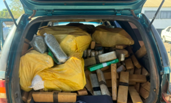 Em certo momento, uma das equipes localizou um veículo Chevrolet Blazer antigo, cor verde, que correspondia às características mencionadas na denúncia. O condutor do veículo também apresentava comportamento suspeito, o que motivou a abordagem. Durante a busca no veículo, foi encontrada uma grande quantidade de fardos e tabletes de maconha.